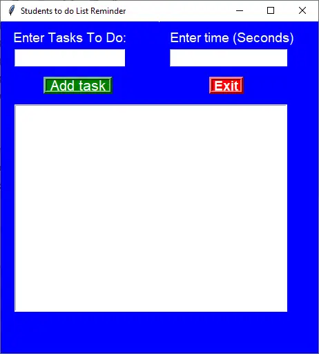 So first of all you have to design the main screen. This display screen has a label to enter tasks to do and enter time(seconds), and for the buttons, it adds task and exit. So let’s see the way to put into effect this.